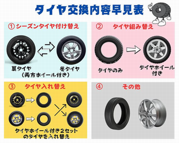 この時期スタッドレスタイヤ及びタイヤ交換の電話お問い合わせで時折伝わりにくい時があるので、こちらの表を参考までに載せさせていただきます。